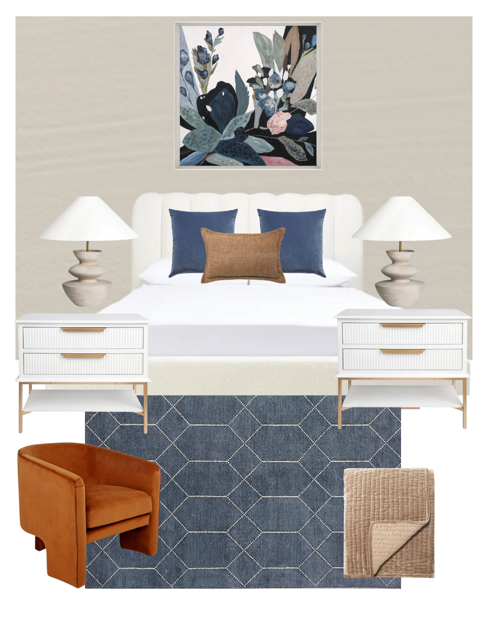 Shop the complete look with our bedroom mood boards, meticulously styled by our interior design experts. We've even included artwork suggestions, leaving no detail to chance.
