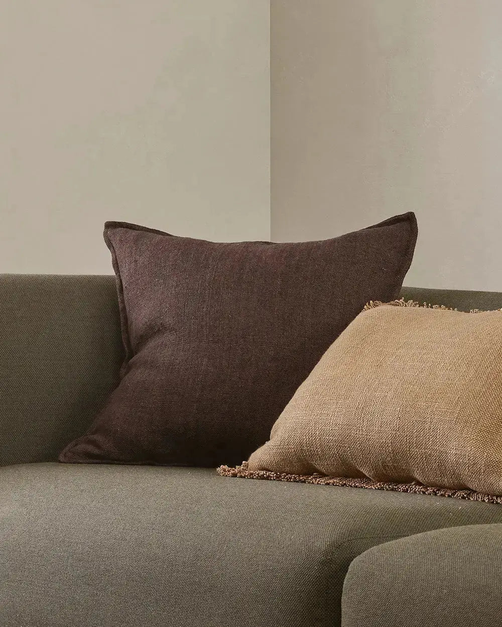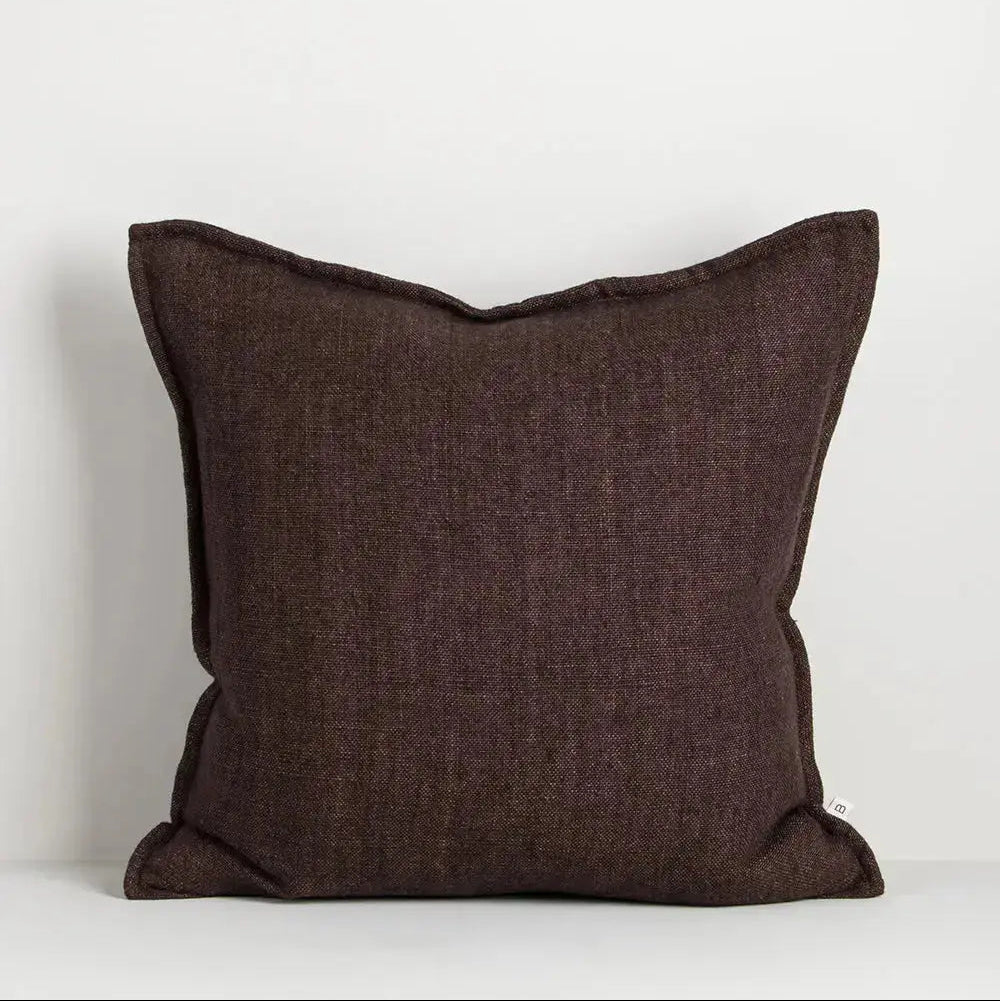 Enduringly beautiful, the heavy-weight weave of the Flaxmill cushion celebrates the natural texture of raw linen fibres. Featuring a 1cm flange edge, this deep mahogany tone adds a rich, grounded quality to interiors.